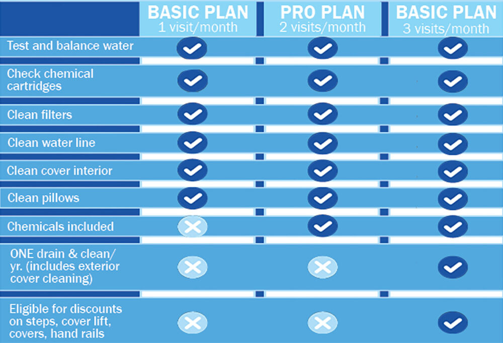 For hot tub enthusiasts in New York, dive into the ultimate care with our monthly maintenance plan. Choose from three tiers of services tailored to meet your hot tub’s unique needs. Enjoy peace of mind with regular check-ups, and customize your plan further with our a la carte offerings. Our hot tub maintenance plan is designed to keep your relaxation haven in perfect condition, ensuring you get the most out of every soak. Indulge in worry-free hot tub ownership, available exclusively in New York.